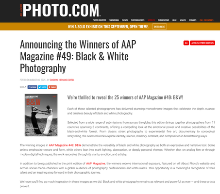 My picture "steam" was awarded as Finalist at the DODHO Magazine (Barcelona) MONOCHROMATIC Award 2025